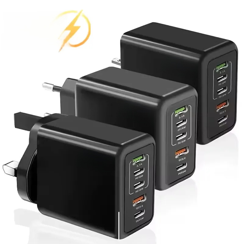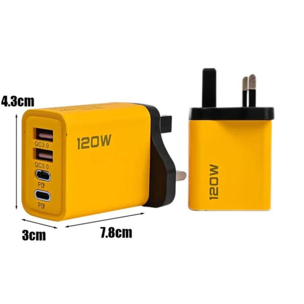 (UK) 120W Fast Charging 4 Ports Mobile Phone Charger QC3.0 USB Type C Chargers Dual PD Wall Adapter EU/US/UK Plug for IPhone15 Xiaomi