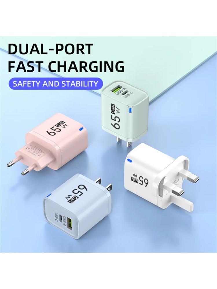 65W GaN Fast Charging Mobile Phone Charger QC3.0 USB Type C Chargers Dual PD Wall Adapter EU/US/UK Plug For IPhone15 Xiaomi