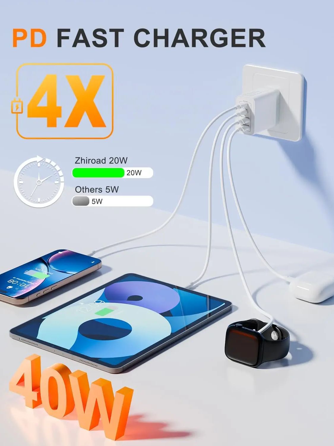 EU/UK/US/AU Wall Plug Multi-Port USB-C/USB-A Mobile Phone Charger, 40W Dual PD Fast Charging Block Adapter for iPhone, Xiaomi