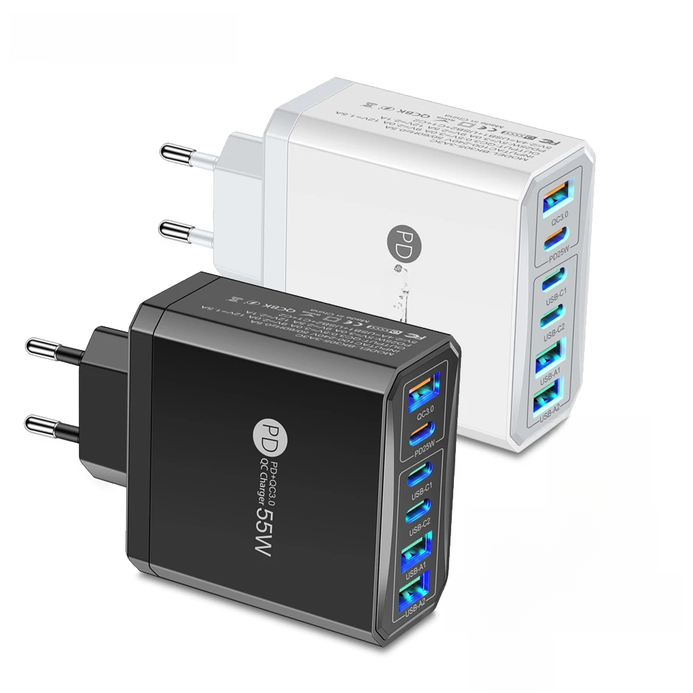 55W 3 USB 3 PD Charger Fast Charging QC3.0 Travel Charger For iPhone 15 14 Samsung Xiaomi Mobile Phone Adapter EU KR US UK Plug