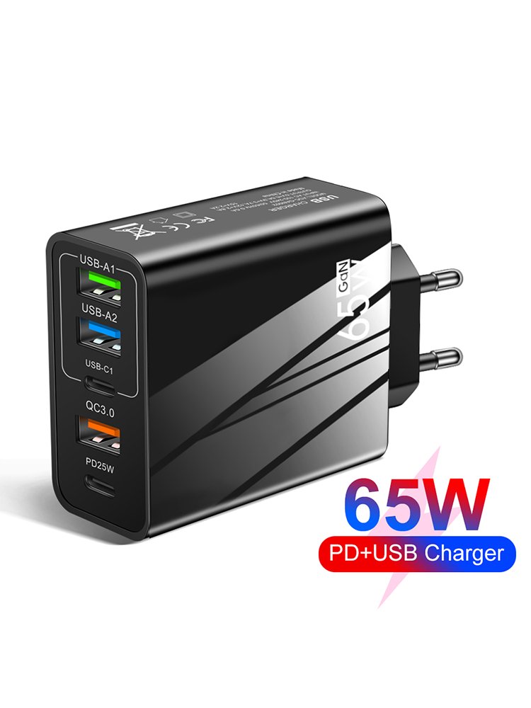 GaN 65W USB Charger Type C Fast Charging Mobile Phone Adapter QC3.0 USB Travel Charger For iPhone Samsung Xiaomi EU/US/UK Plug