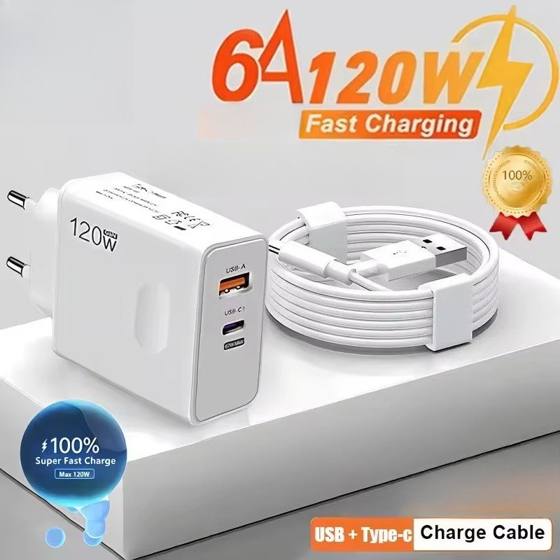 120W USB Fast Charging UK/US/EU Plug Charger Mobile Phone Adapter For iPhone Samsung Xiaomi Huawei Wall Quick Charger With Cable
