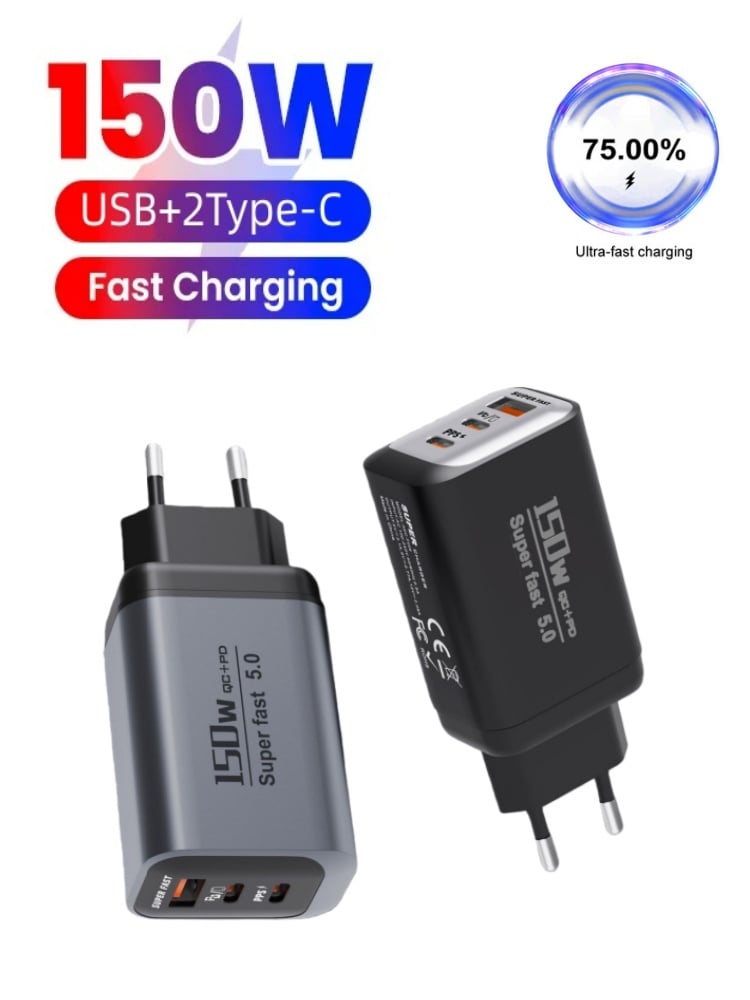 USB Type C 150W Charger USB QC3.0 Fast Charging Mobile Phone Charger Travel Adapter For iPhone 17 Samsung Xiaomi EU/UK/US Plug