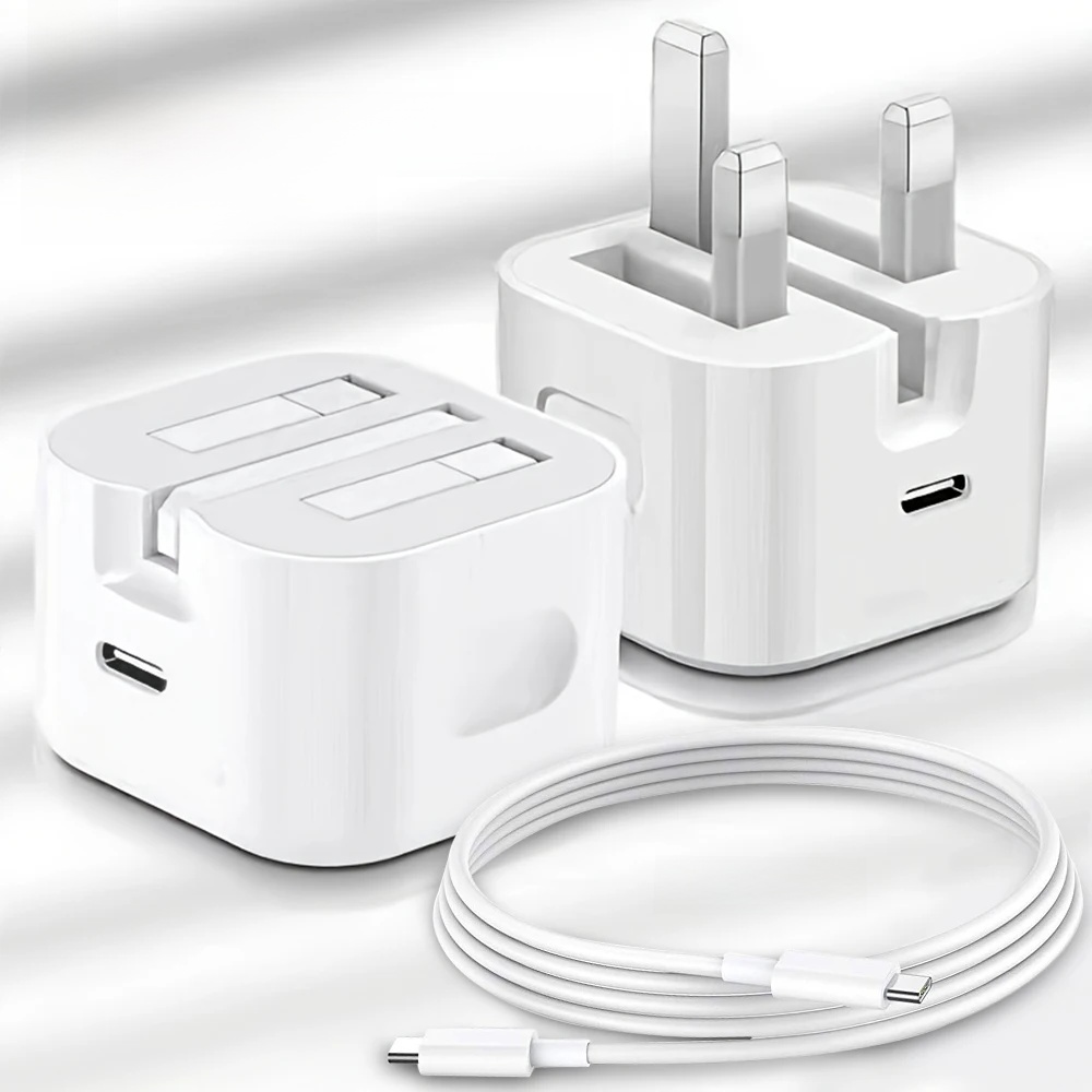 UK Plug Foldable 20W Mobile Phone Adapter With 2m Dual Type-C Mobile Phone Charging Cable Suitable for iPhone 15 16
