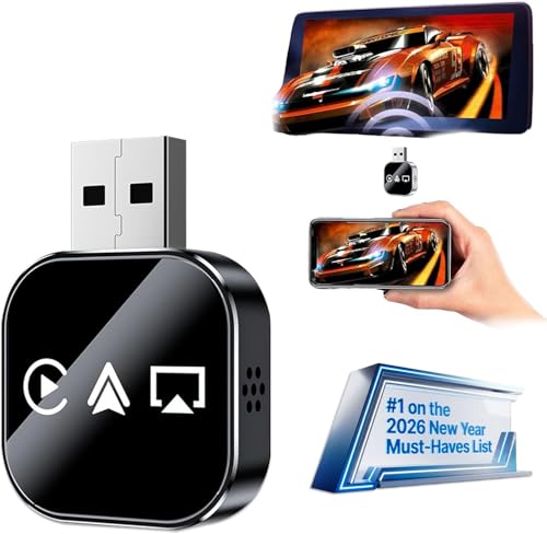 2026 Upgrade 3 in 1 Wireless Mirror Link Adapter, Instant Wired to Wireless Conversion Plug & Play Mini Fast Stable Connection Design, With 2.4/5ghz Wifi and Bluetooth 5.0 for iPhone