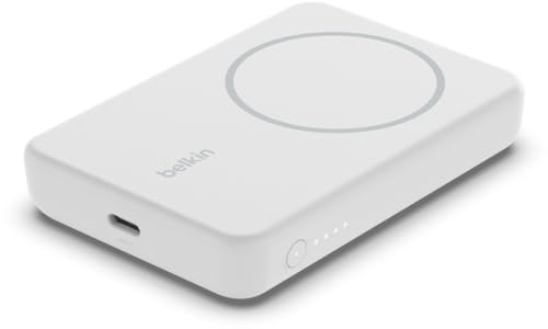 Belkin 5000mAh Magnetic Wireless Power Bank, Portable Charger Compatible with MagSafe, Battery Pack with 7.5W Output, 10W Input and Kickstand, Compatible with iPhone 16, 15, 14, 13, 12 Series - White