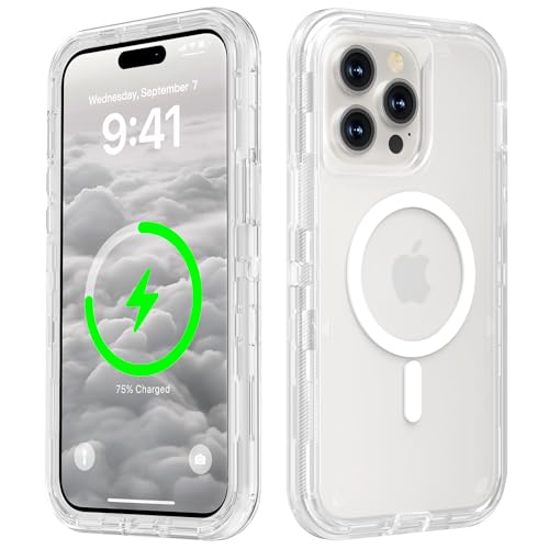 Follaroma for iPhone 14 Pro Max Case, Compatible with MagSafe, Dual Layer Transparent Magnetic Phone Cases, Heavy Duty Shockproof and Anti-Drop Protective Cover for iPhone 14 ProMax, 6.7'', Clear