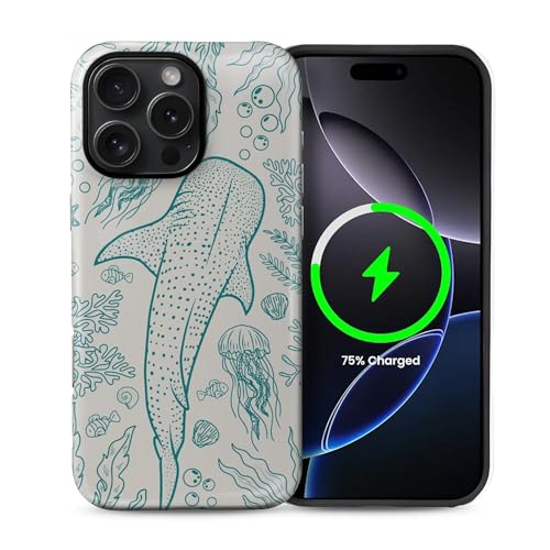 2 in 1 Aesthetic case for iPhone 16 ProMax 6.9 inch Compatible with MagSafe, Full Protection Cell Phone Magnetic Shockproof -Whale Pattern