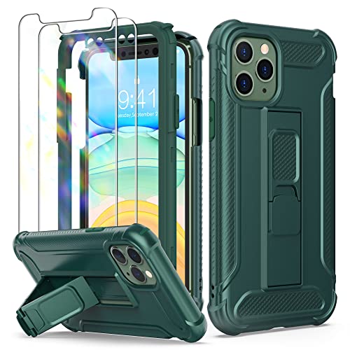 ORETECH Designed for iPhone 11 Pro Max Case, and[2 x Tempered Glass Screen Protectors] [Built-in Kickstand] Shockproof iPhone 11 Promax Case 360 Full Body Protective Silicone TPU Bumper Cover - Green