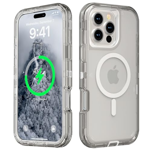 Follaroma for iPhone 16 Pro Max Case, Compatible with MagSafe, Dual Layer Transparent Magnetic Phone Cases, Heavy Duty Shockproof and Anti-Drop Protective Cover for iPhone 16 ProMax, 6.9'', Gray