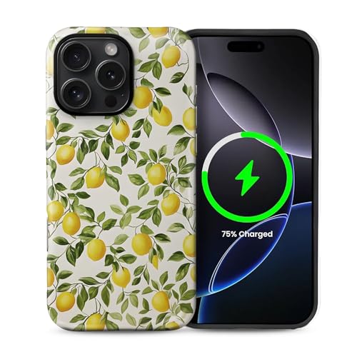2 in 1 Aesthetic case for iPhone 16 ProMax 6.9 inch Compatible with MagSafe, Full Protection Cell Phone Magnetic Shockproof -Lemon Pattern