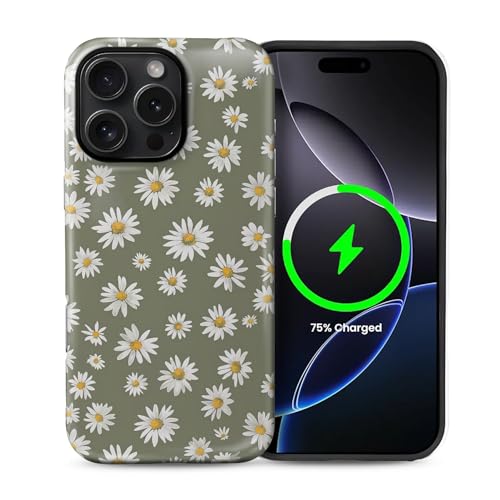 2 in 1 Aesthetic case for iPhone 16 ProMax 6.9 inch Compatible with MagSafe, Full Protection Cell Phone Magnetic Shockproof -Daisy Pattern
