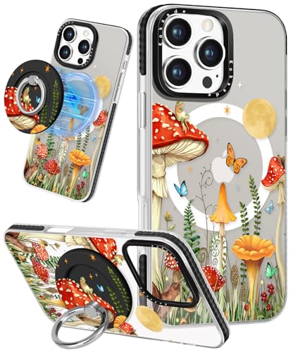 Kokaade for iPhone 16 Pro Max Case for Women Girls - Cute Kawaii Mushroom Butterfly Design Compatible with Magsafe for Magnetic Ring Holder Stand Phone Cover Girly TPU Funda for iPhone 16 Promax