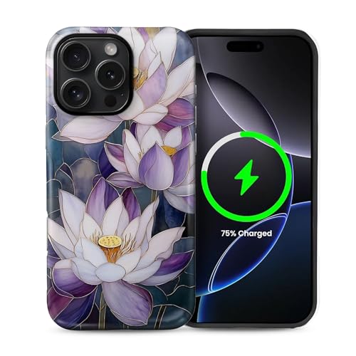 2 in 1 Aesthetic case for iPhone 16 ProMax 6.9 inch Compatible with MagSafe, Full Protection Cell Phone Magnetic Shockproof -Lotus Pattern