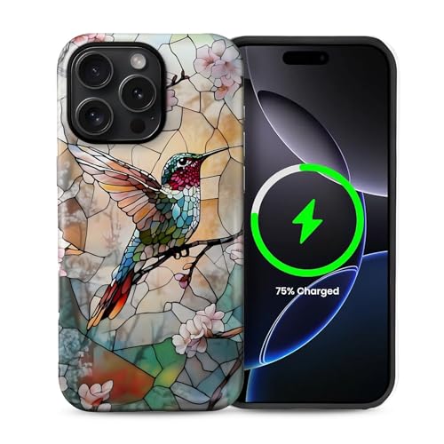 2 in 1 Aesthetic case for iPhone 16 ProMax 6.9 inch Compatible with MagSafe, Full Protection Cell Phone Magnetic Shockproof -Hummingbird Pattern
