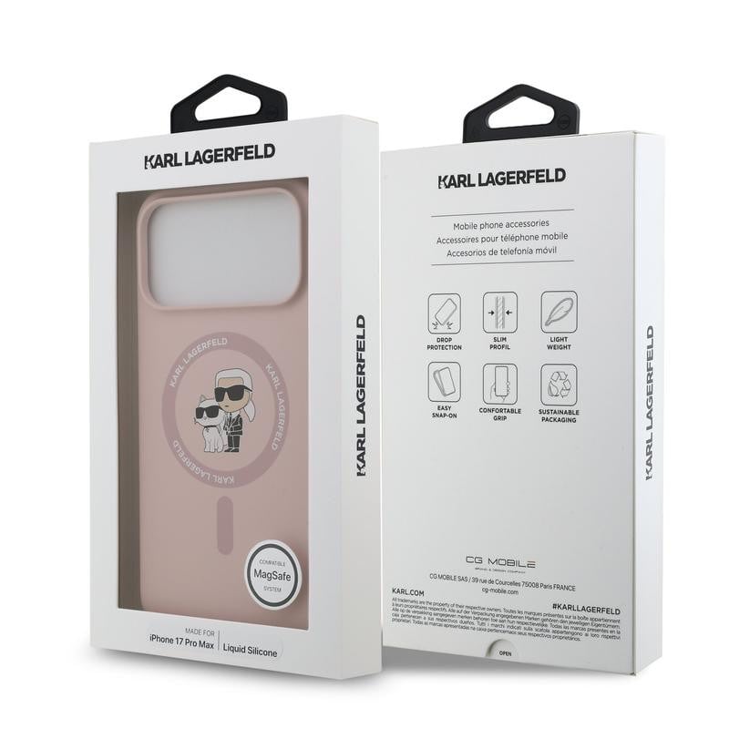 Karl Lagerfeld Liquid Silicone Karl and Choupette Case for iPhone 17 ProMax Pink
