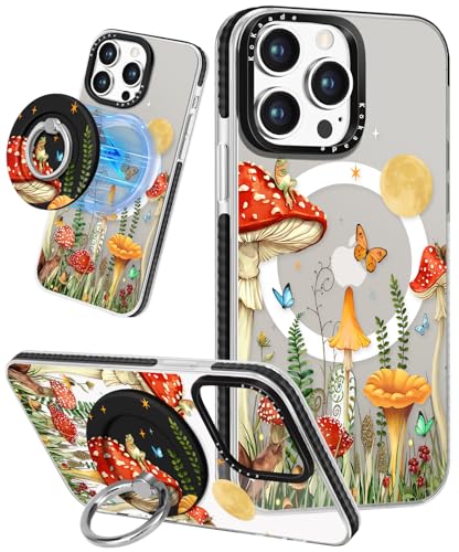 Kokaade for iPhone 15 Pro Max Case for Women Girls - Cute Kawaii Mushroom Butterfly Design Compatible with Magsafe for Magnetic Ring Holder Stand Phone Cover Girly TPU Funda for iPhone 15 Promax