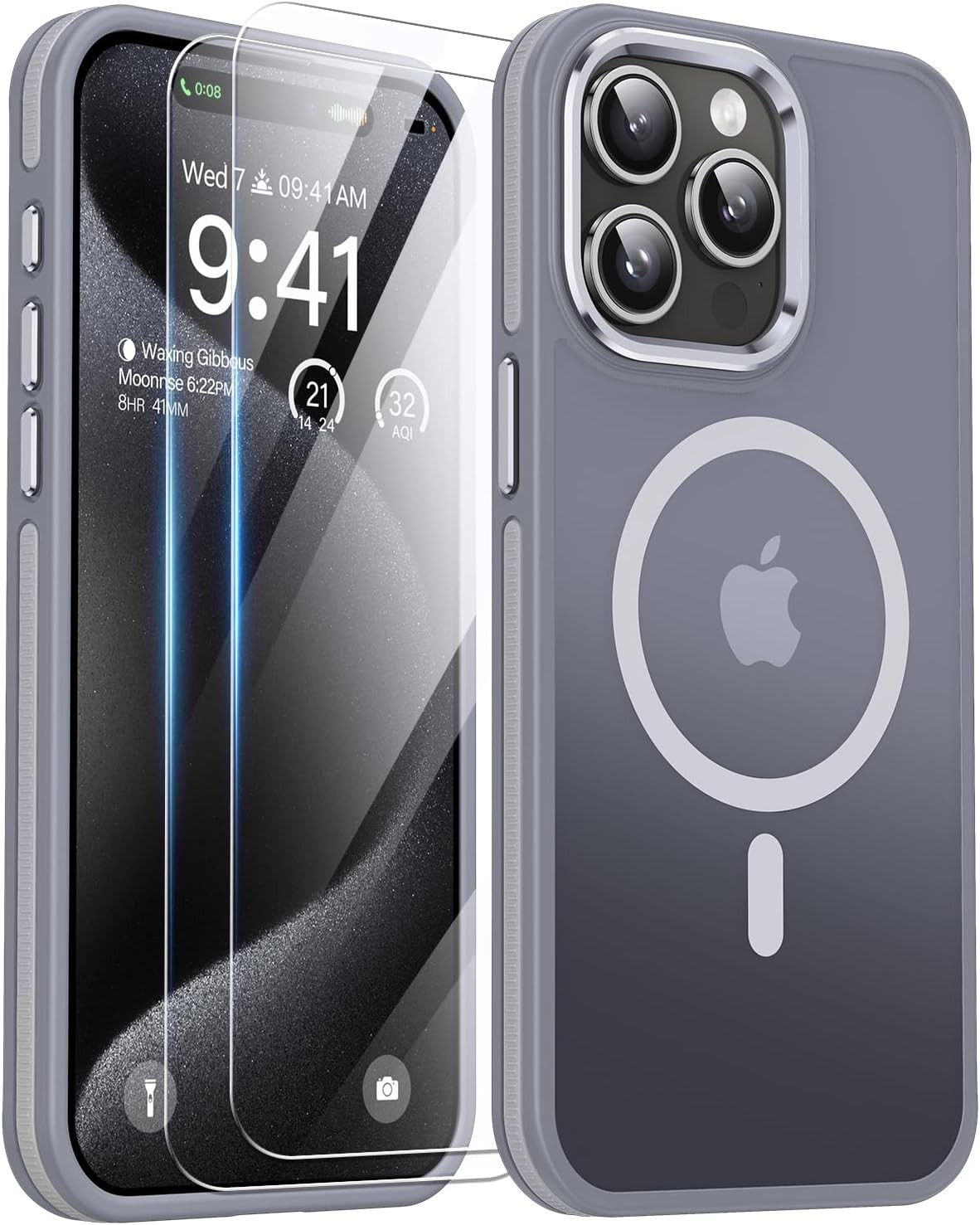 Follaroma for iPhone 15 Pro Max Case, Compatible with MagSafe, Dual Layer Transparent Magnetic Phone Cases, Heavy Duty Shockproof and Anti-Drop Protective Cover for iPhone 15 ProMax, 6.7'', Gray