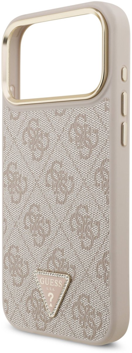 Guess PU Leather 4G Triangle Logo Gold Frame Case for iPhone 17 ProMax 6.9" Pink