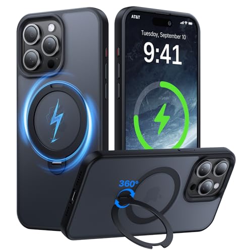 Giisorde 360° Magnetic Stand for iPhone 14 Pro Max Case, [Compatible with MagSafe] Build-in Invisible Ring Kickstand, Shockproof Slim Translucent Matte Phone Case for iPhone 14 Promax, Black