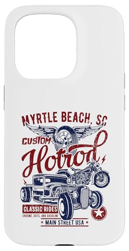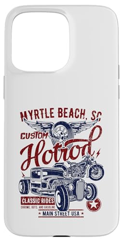 Myrtle Beach SC Vintage Hotrod Car and Motorcycle Design Case for iPhone 15 Pro Max
