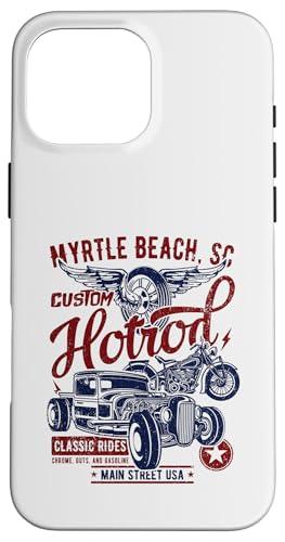 Myrtle Beach SC Vintage Hotrod Car and Motorcycle Design Case for iPhone 16 Pro Max