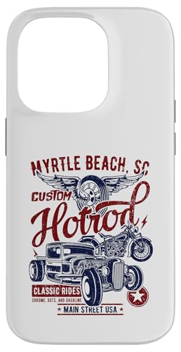 Myrtle Beach SC Vintage Hotrod Car and Motorcycle Design Case for iPhone 14 Pro