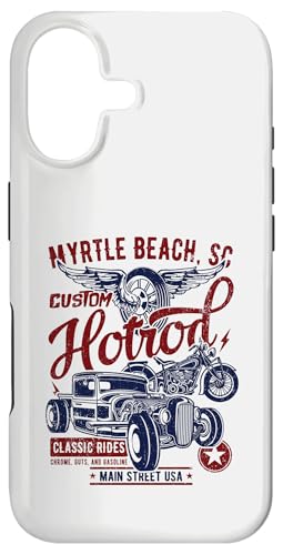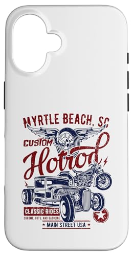 Myrtle Beach SC Vintage Hotrod Car and Motorcycle Design Case for iPhone 16