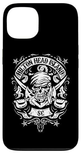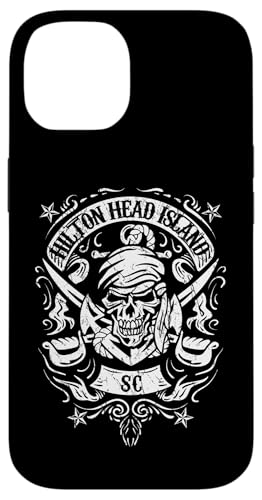 Hilton Head Island SC Pirate Skull and Crossed Swords Design Case for iPhone 15