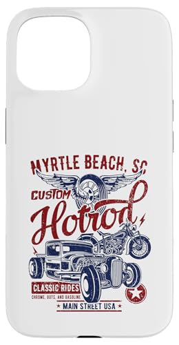 Myrtle Beach SC Vintage Hotrod Car and Motorcycle Design Case for iPhone 15