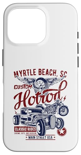 Myrtle Beach SC Vintage Hotrod Car and Motorcycle Design Case for iPhone 16 Pro