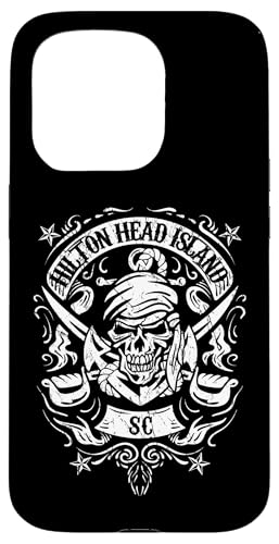Hilton Head Island SC Pirate Skull and Crossed Swords Design Case for iPhone 15 Pro