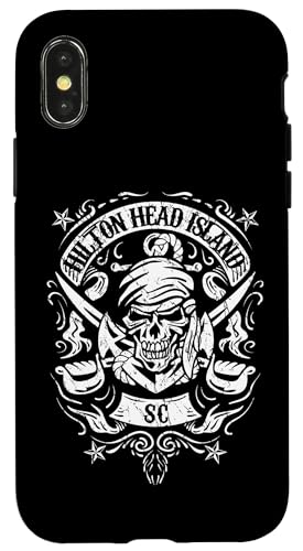 Hilton Head Island SC Pirate Skull and Crossed Swords Design Case for iPhone X/XS