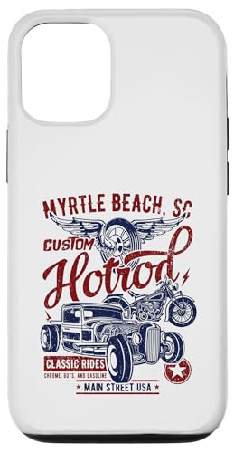 Myrtle Beach SC Vintage Hotrod Car and Motorcycle Design Case for iPhone 12/12 Pro