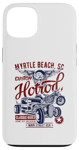 Myrtle Beach SC Vintage Hotrod Car and Motorcycle Design Case for iPhone 13