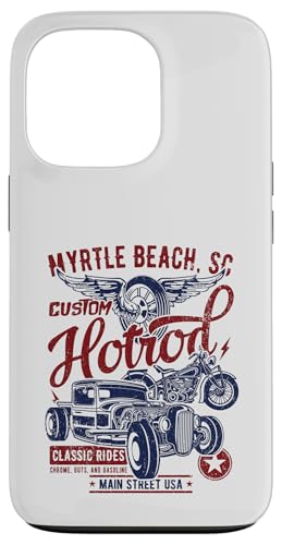 Myrtle Beach SC Vintage Hotrod Car and Motorcycle Design Case for iPhone 13 Pro