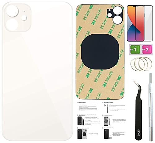 Day-market 12 Back Glass Replacement for iPhone 12 Back Cover Glass (6.1 Inch) with Pre-Installed Tape +Installation Instruction + Repair Tools+ Screen Protector (White)