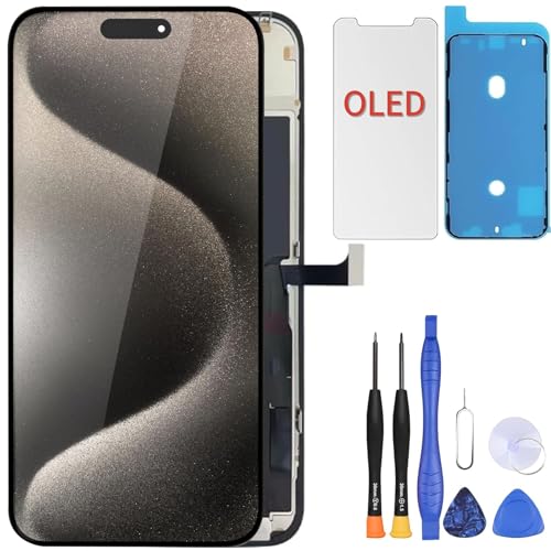 ZOETEC Hard OLED Screen Replacement For iPhone 15 Pro (NOT LCD) 5.4'' Full HD Display COF Touch Screen Digitizer Frame Assembly with Repair Tool Kits, Waterproof Adhesive, Tempered Glass
