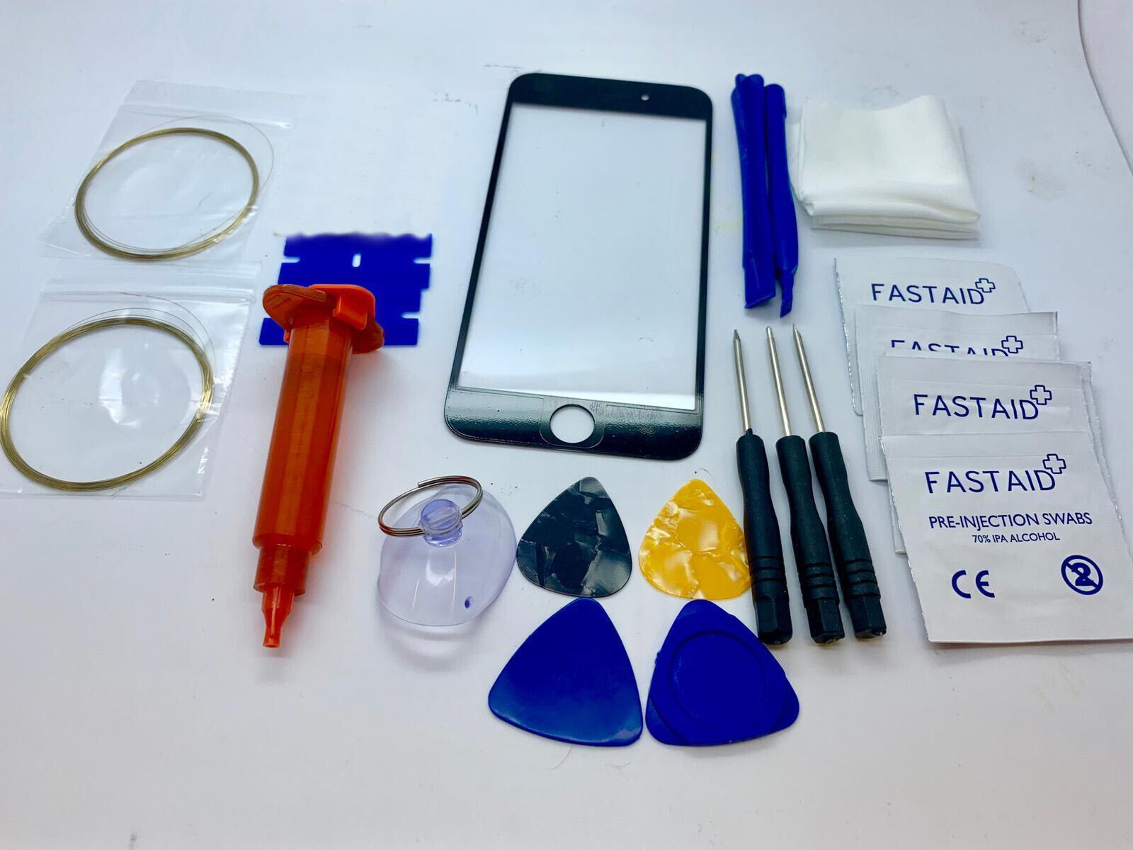 Front Glass, Screen Repair Kit for iPhone 6 Plus Black, Loca Glue, Wire, More