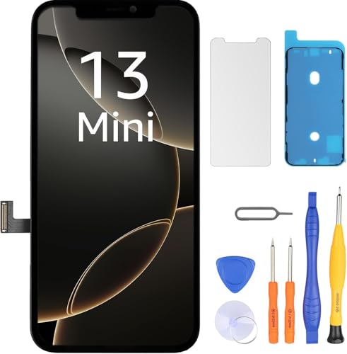 LL TRADER Screen Replacement for iPhone 13 Mini 5.4" LCD Retina FHD Display COF Touch Screen Digitiser with Repair Tool Kits, Waterproof Tape and Screen Protoctor (Truetone programable)