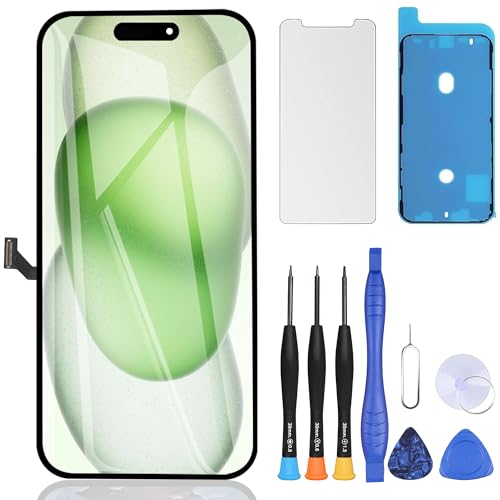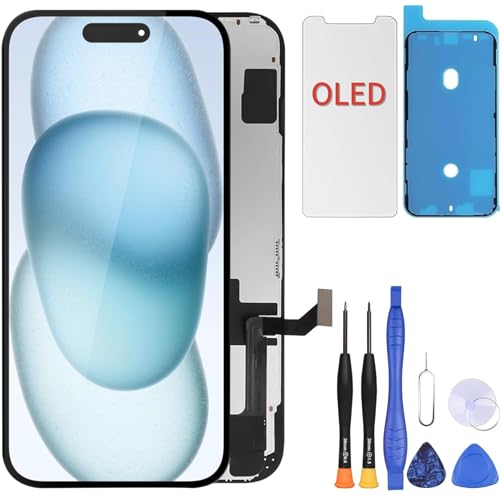 ZOETEC Soft OLED Screen Replacement For iPhone 15 (NOT LCD) 6.1'' Full HD Display COF Touch Screen Digitizer Frame Assembly with Repair Tool Kits, Waterproof Adhesive, Tempered Glass