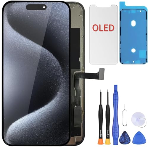 ZOETEC Soft OLED Screen Replacement For iPhone 15 Pro Max (NOT LCD) 6.7'' Full HD Display COF Touch Screen Digitizer Frame Assembly with Repair Tool Kits, Waterproof Adhesive, Tempered Glass