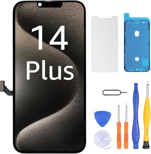 LL TRADER Screen Replacement for iPhone 14 Plus 6.7" LCD Retina FHD Display COF Touch Screen Digitiser with Repair Tool Kits, Waterproof Tape and Screen Protoctor (Truetone programable)