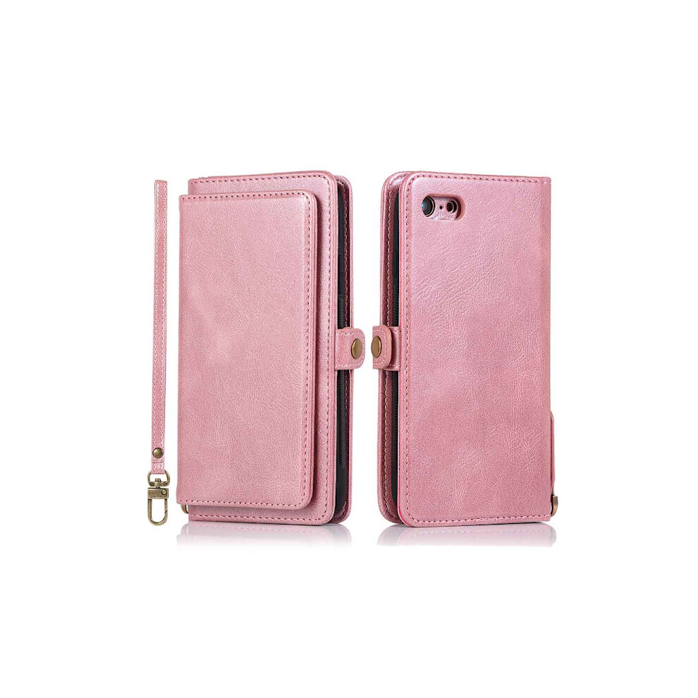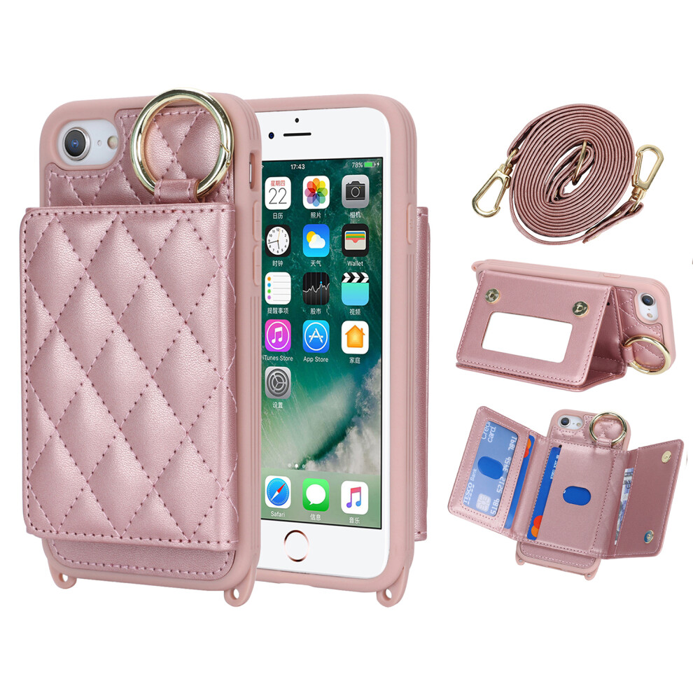 (Rose Gold ) Flip Case for iphone Se 2020/2022 Rfid Blocking Shockproof Wallet Short and Long Strap
