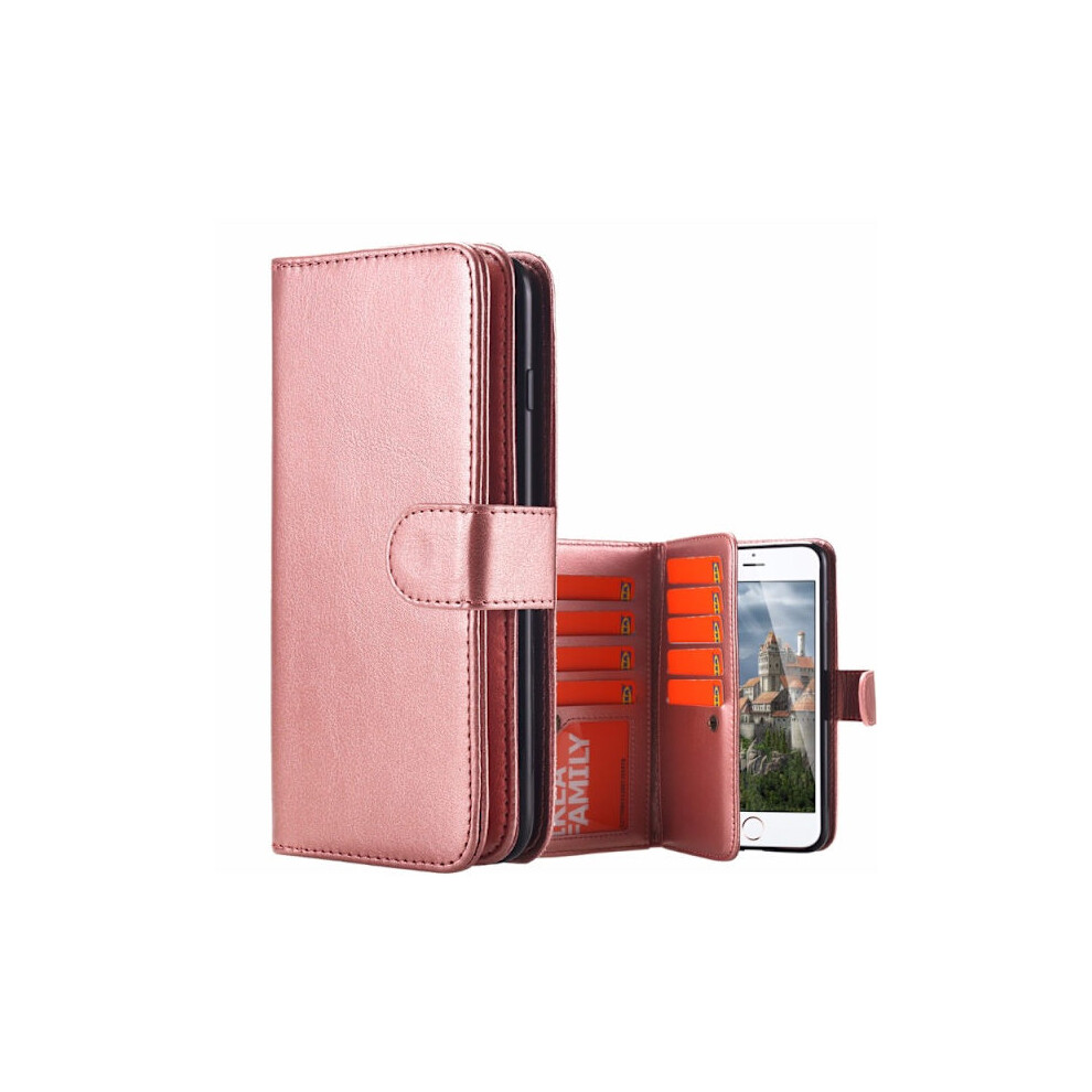 Compatible with iPhone SE 2020 - Practical Rugged 9-Card Wallet Case Rose Gold