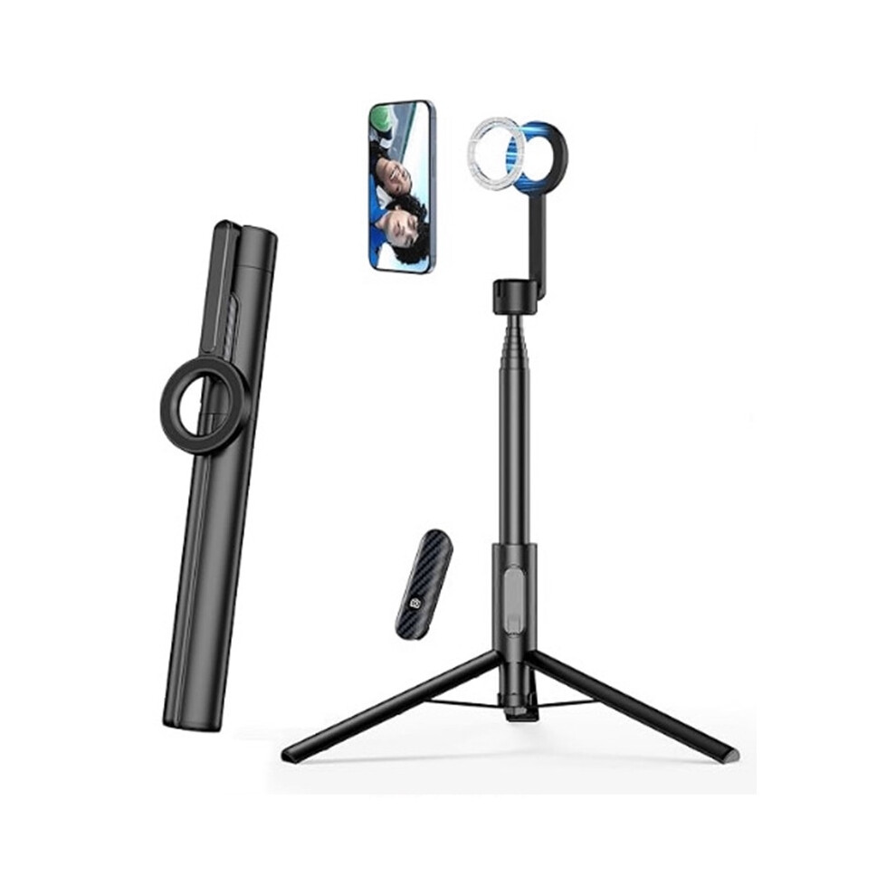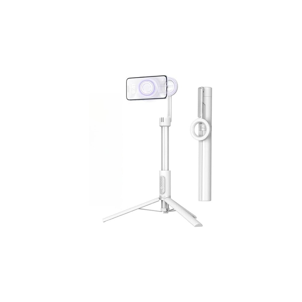 Magsafe Tripod Stand Compatible with iPhone, Portable Selfie Stick with Rechargeable Remote, Metal Ring & Extendable Detachable Design