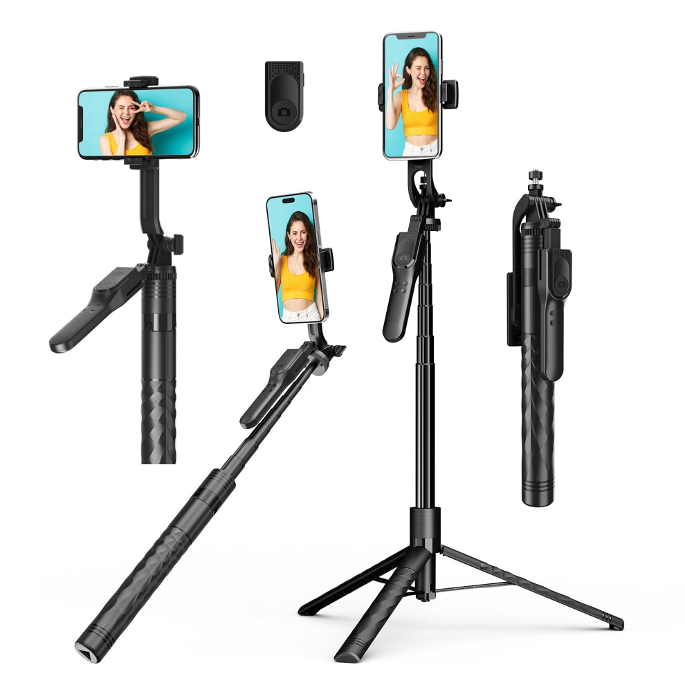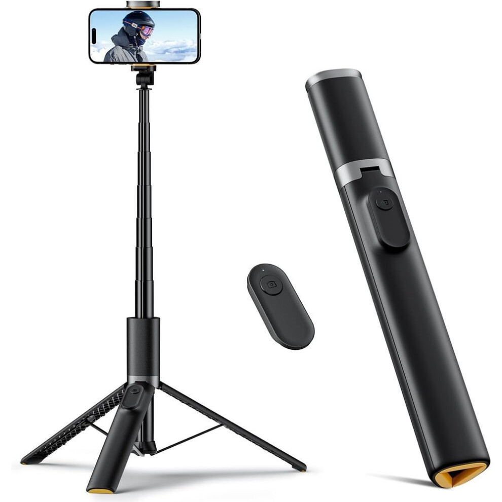 ATUMTEK Selfie Stick Tripod, 3-in-1 Extendable Aluminum Phone Tripod with Detachable Bluetooth Remote, Compatible with iPhone 17/16/15/14/13/12/11/11 Pro/XS Max/XR and Samsung Smartphones, Black