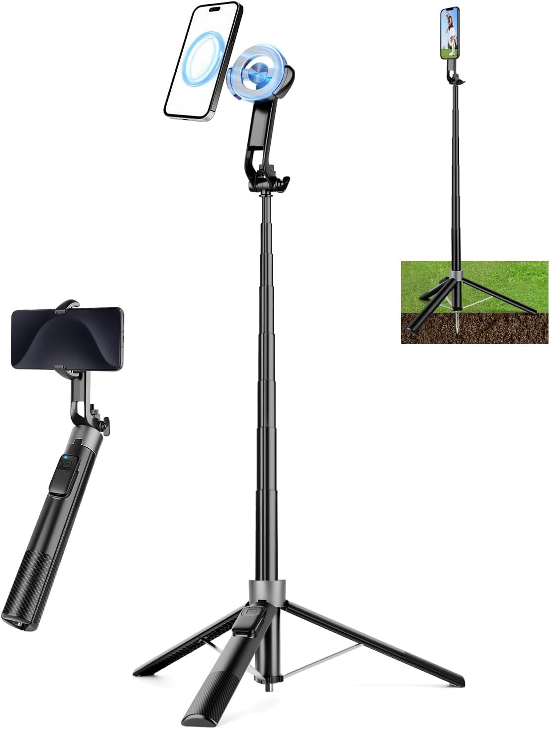 Magnetic Phone Tripod for iPhone MagSafeâ64â Selfie Stick with Remote, Travel Stand for iPhone 17 Pro Max