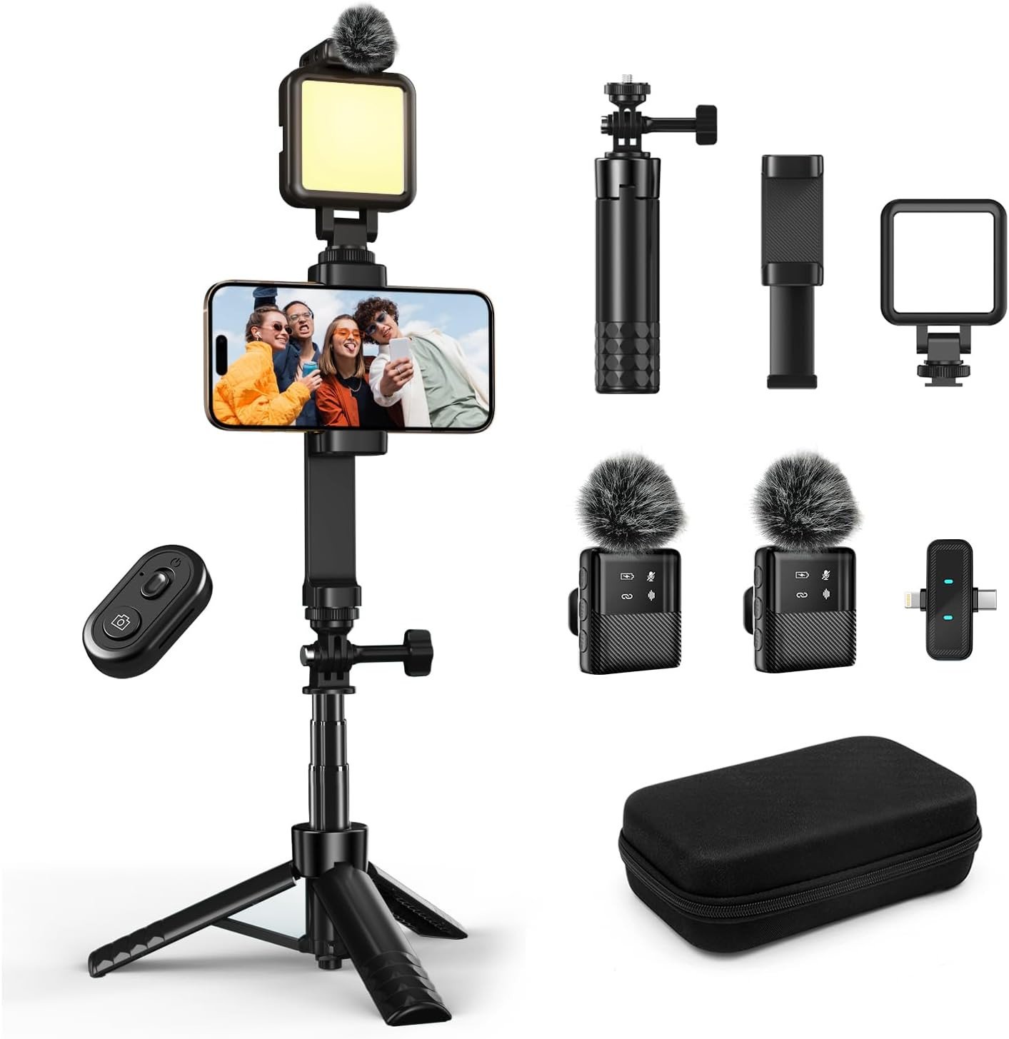 Yayusi Vlogging Kit for Iphone/Android, 30.71" Selfie Stick Tripod with Light, M