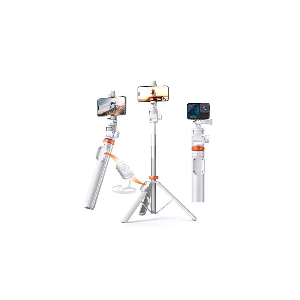 ATUMTEK Selfie Stick Tripod, 3-in-1 Extendable Aluminum Phone Tripod with Detachable Bluetooth Remote, Compatible with iPhone 17/16/15/14/13/12/11/11 Pro/XS Max/XR and Samsung Smartphones, White